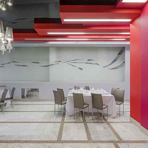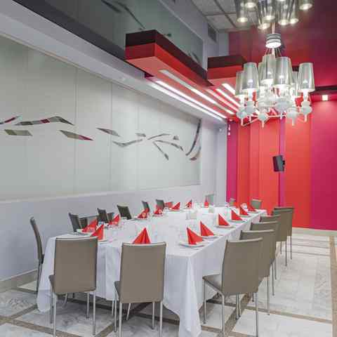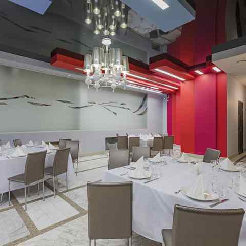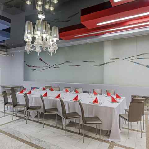 Большой зал рассчитан до 90 гостей. Это светлое и просторное помещение в классическом стиле, которое легко адаптируется под любое оформление. Продуманная система вентиляции и кондиционирования поддерживает комфортную атмосферу на протяжении всего мероприятия.